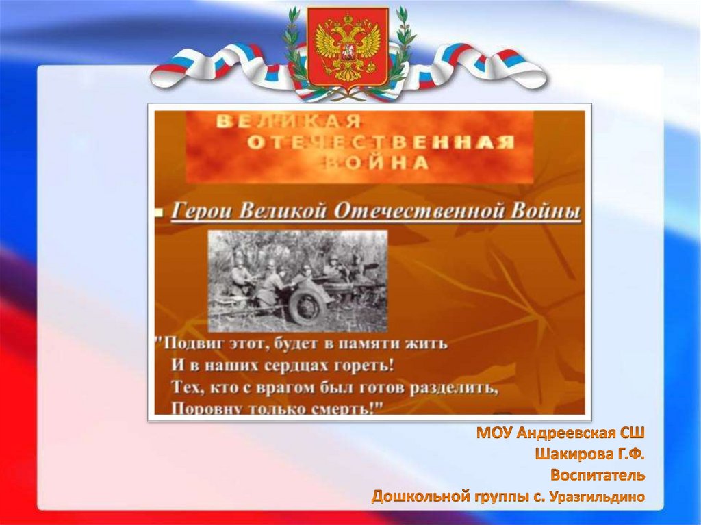 ВЕЧНАЯ СЛАВА ГЕРОЯМ ВЕЛИКОЙОТЕЧЕСТВЕННОЙ ВОЙНЫ