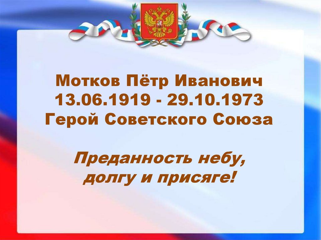 Мотков П.И. Именно ему