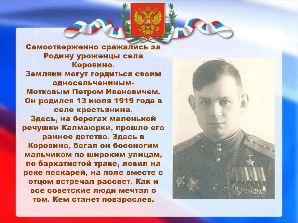 односельчанинымМотковым Петром Ивановичем.
