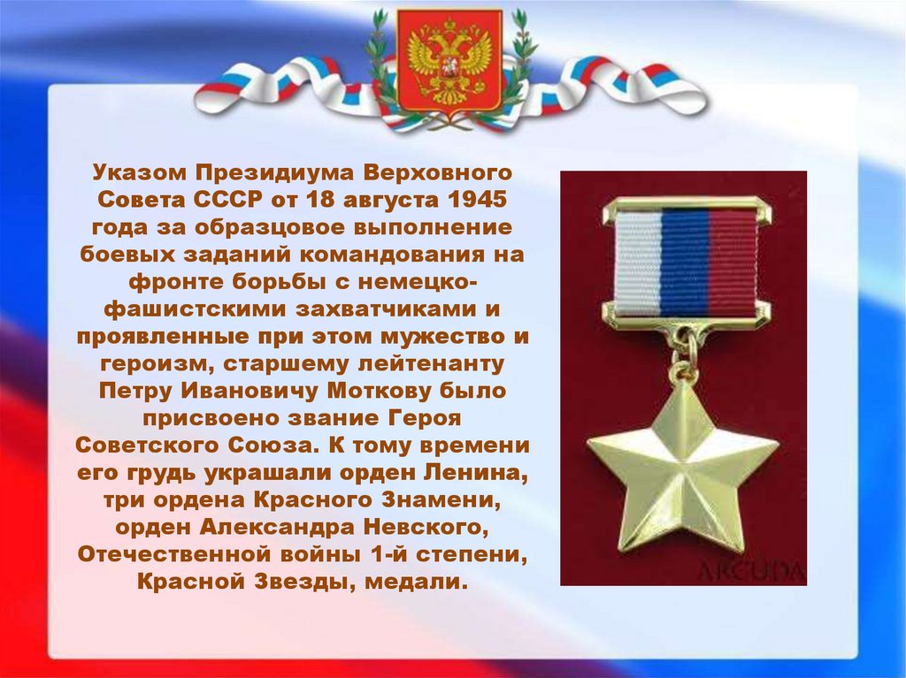 Указом Президиума ВерховногоСовета СССР от 18 августа 1945