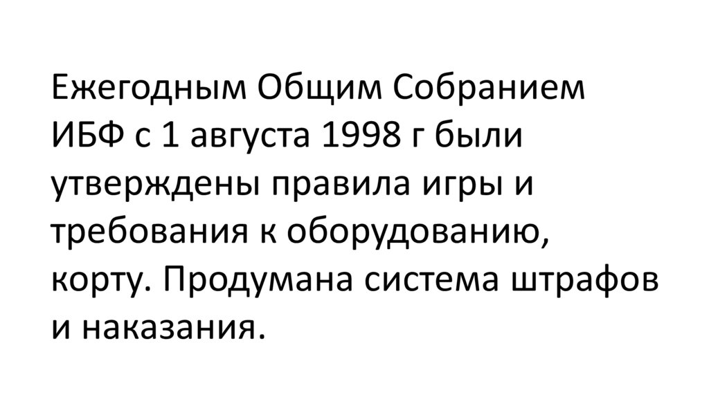 Ежегодным Общим СобраниемИБФ с 1 августа 1998 г были