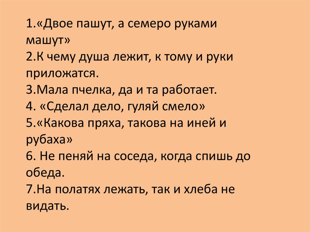 1.«Двое пашут, а семеро рукамимашут»