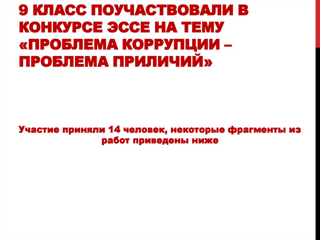 9 КЛАСС ПОУЧАСТВОВАЛИ ВКОНКУРСЕ ЭССЕ НА ТЕМУ