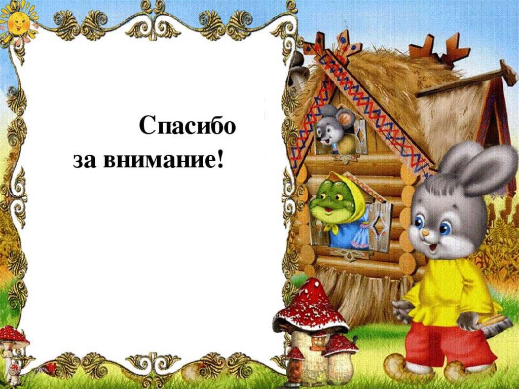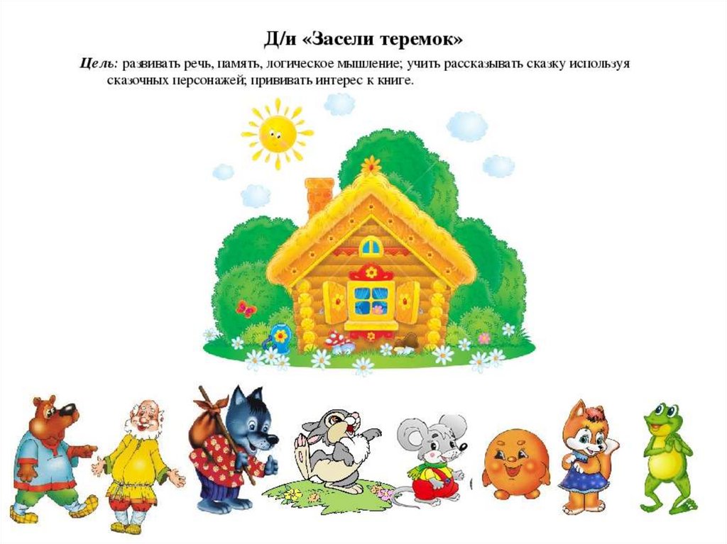 Взрослый изображает персонажей сказки: мышку, лягушку, зайку, лису, волка,