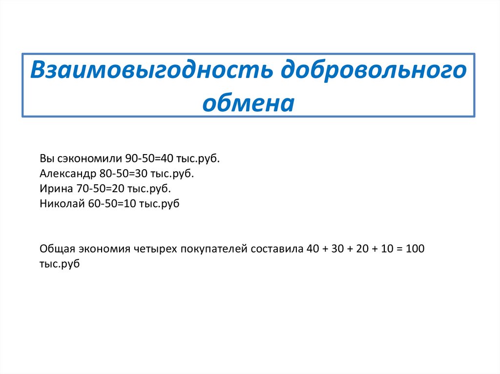 Общая экономия четырех покупателей составила 40 + 30 + 20 + 10 = 100