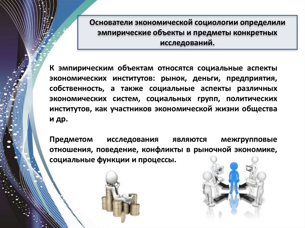 Основатели экономической социологии определилиэмпирические объекты и предметы конкретных
