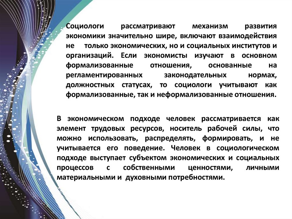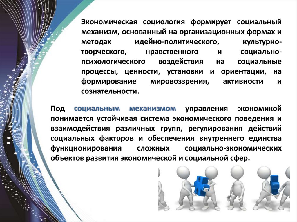 Экономическая социология формирует социальныймеханизм, основанный на организационных формах и