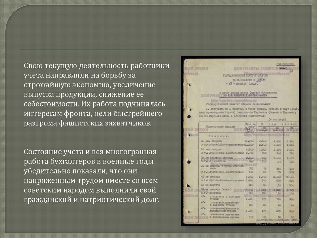 работа бухгалтеров в военные годы