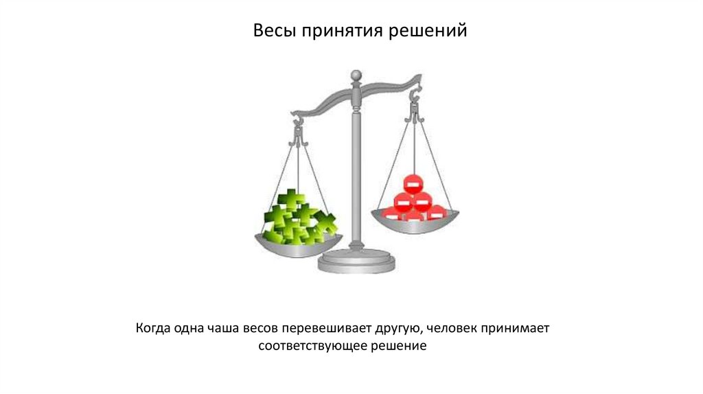 Весы принятия решенийКогда одна чаша весов перевешивает другую, человек принимает