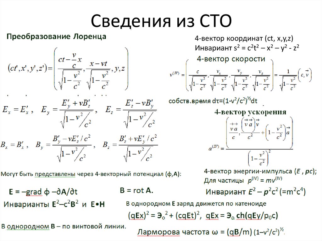 Сведения из СТО4-вектор координат (ct, x,y,z)