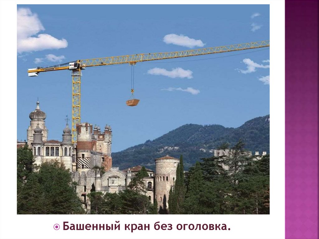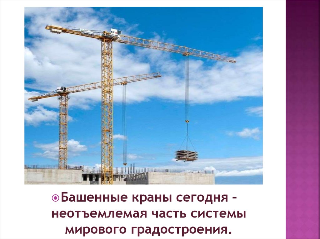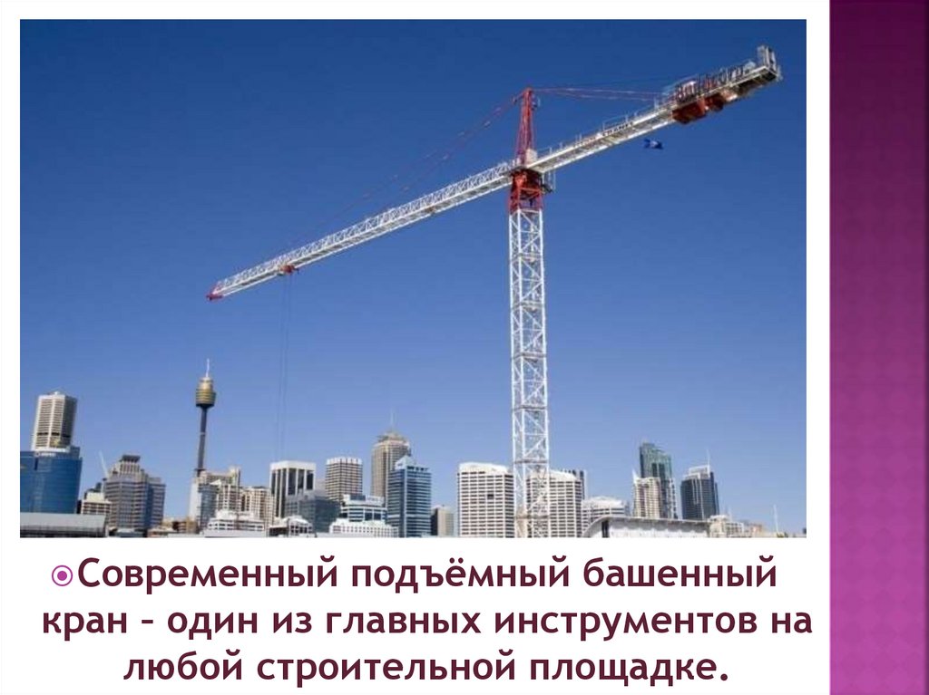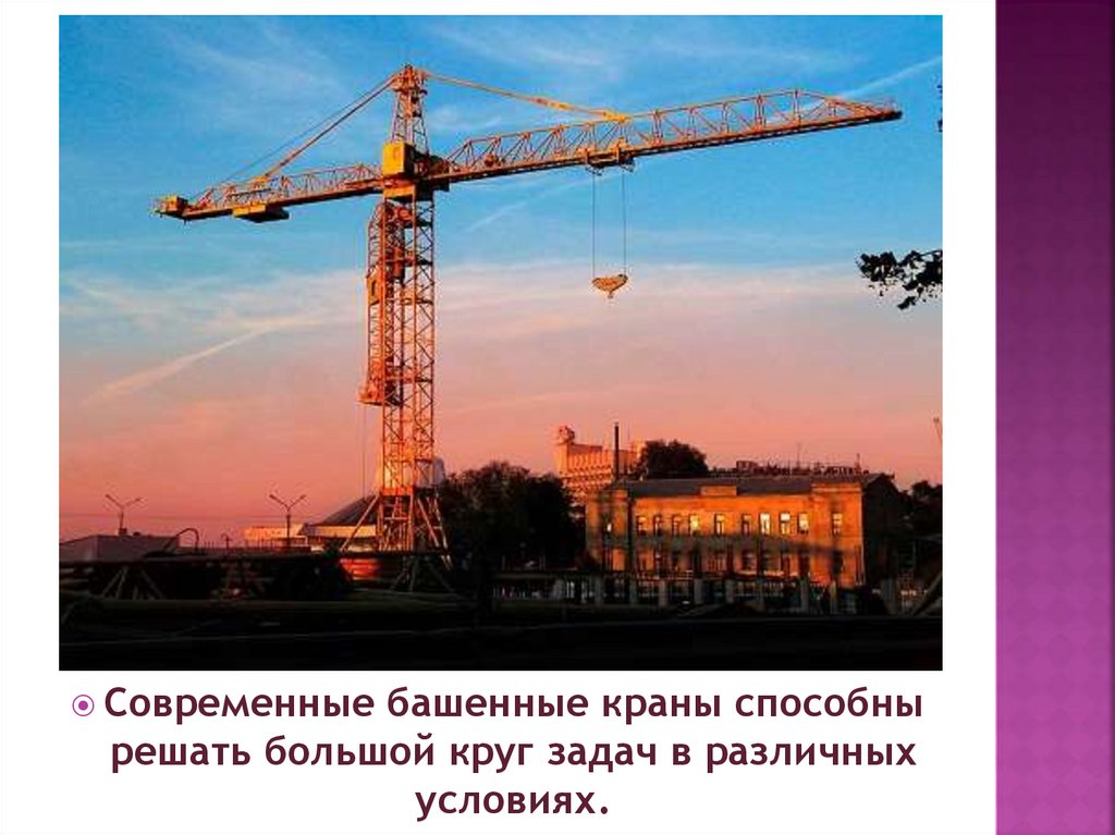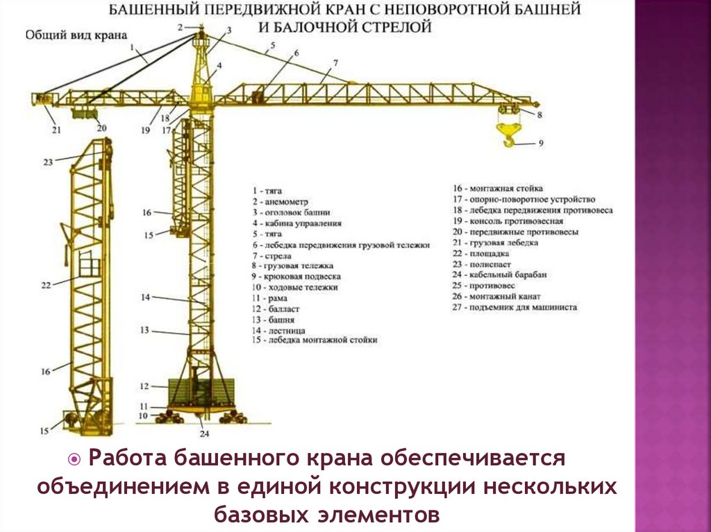 Работа башенного крана обеспечиваетсяобъединением в единой конструкции нескольких
