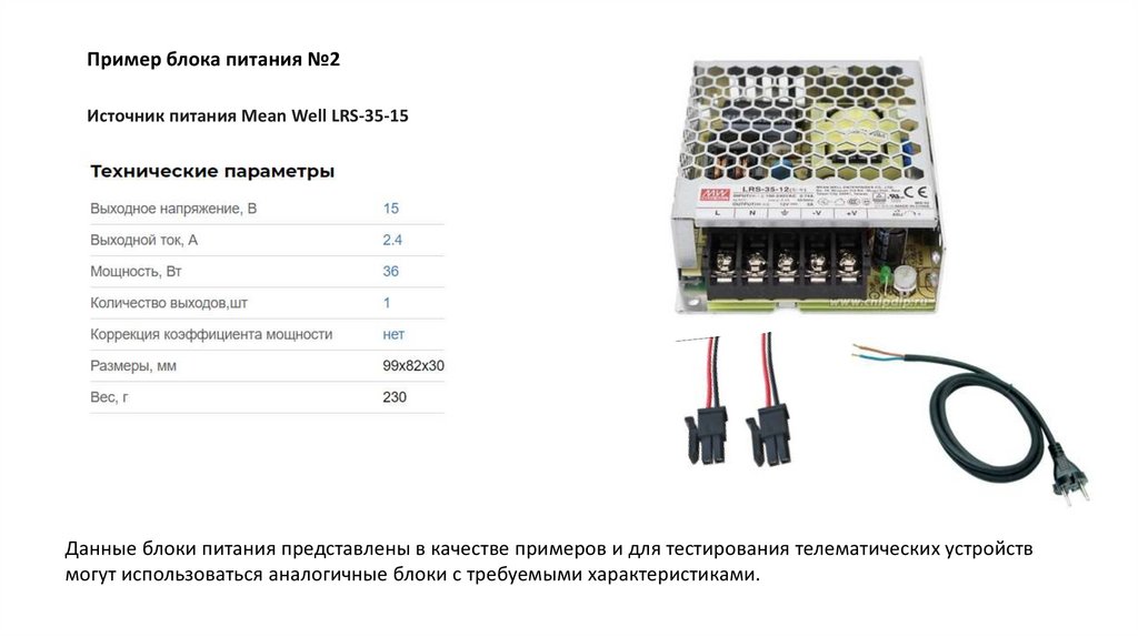 Данные блоки питания представлены в качестве примеров и для тестирования телематических устройств