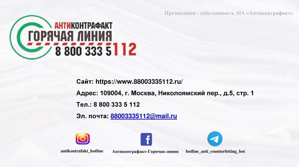 Презентация - собственность МА «Антиконтрафакт»Сайт: https://www.88003335112.ru/