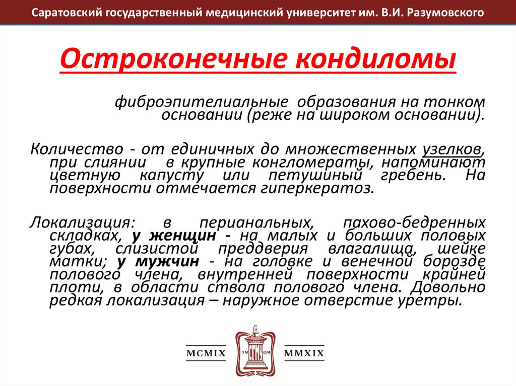 Саратовский государственный медицинский университет им. В.И. РазумовскогоОстроконечные кондиломы