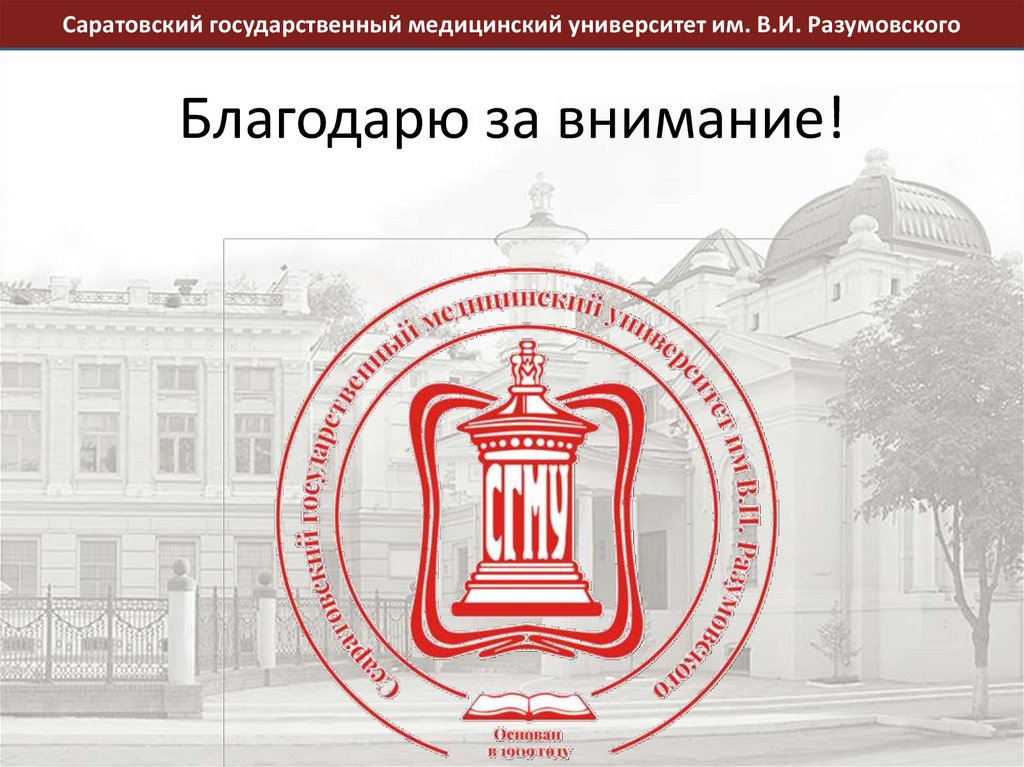 Саратовский государственный медицинский университет им. В.И. РазумовскогоБлагодарю за внимание!