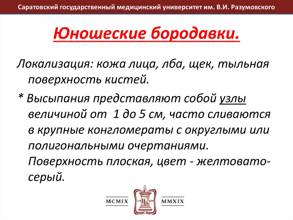 Саратовский государственный медицинский университет им. В.И. РазумовскогоЮношеские бородавки.