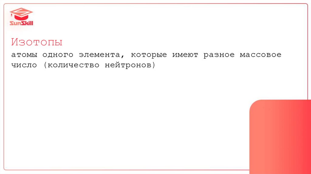 Изотопыатомы одного элемента, которые имеют разное массовое