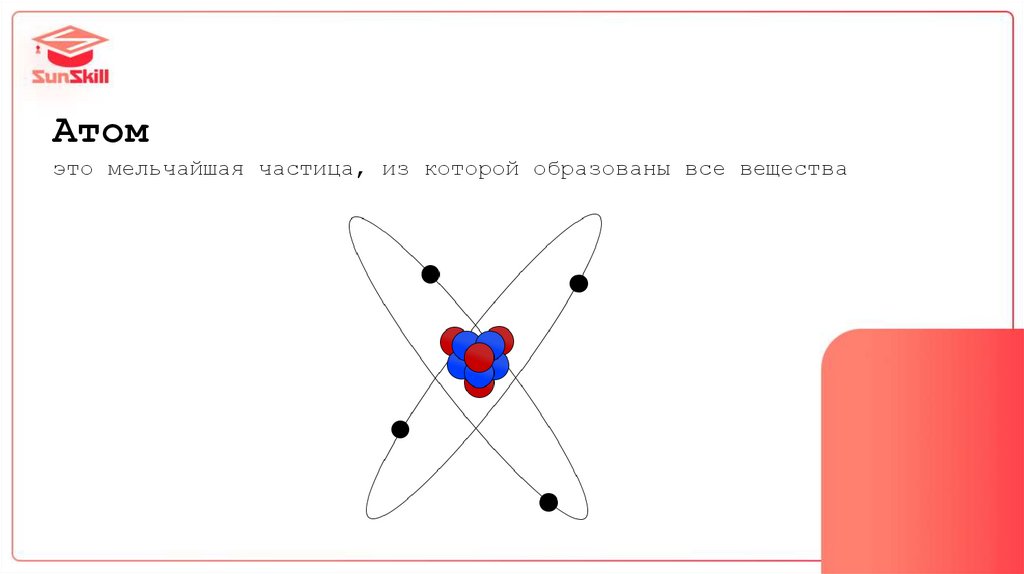 Атомэто мельчайшая частица, из которой образованы все вещества
