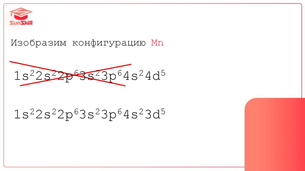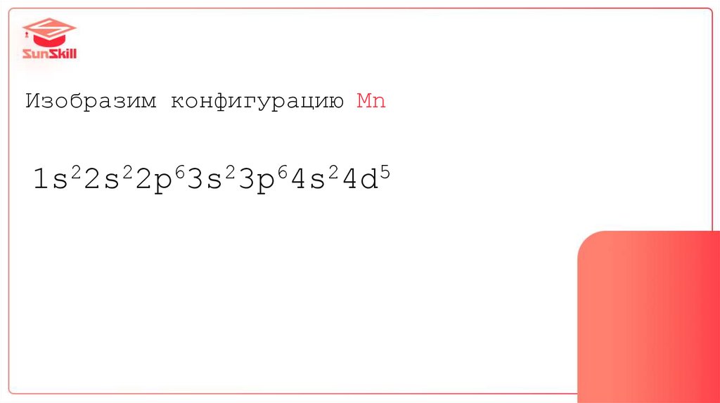 Изобразим конфигурацию Mn1s22s22p63s23p64s24d5