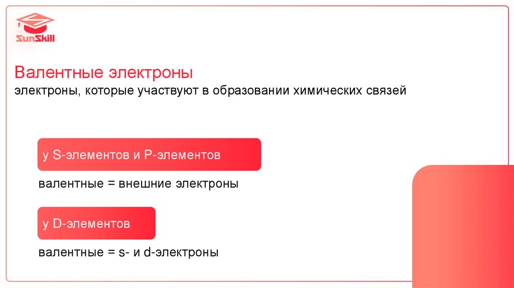 Валентные электроныэлектроны, которые участвуют в образовании химических связей