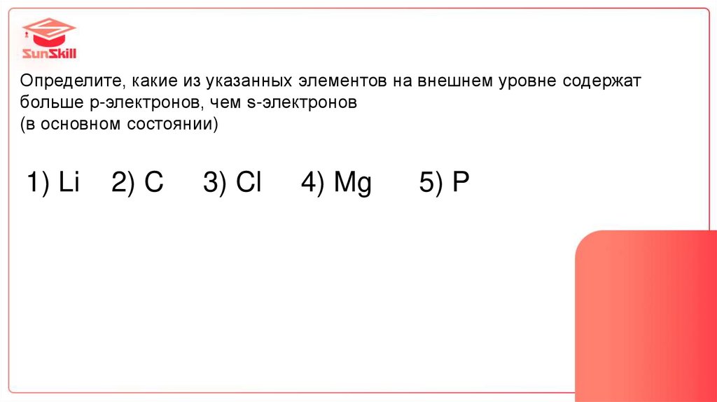 Определите, какие из указанных элементов на внешнем уровне содержатбольше p-электронов, чем s-электронов