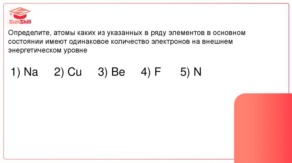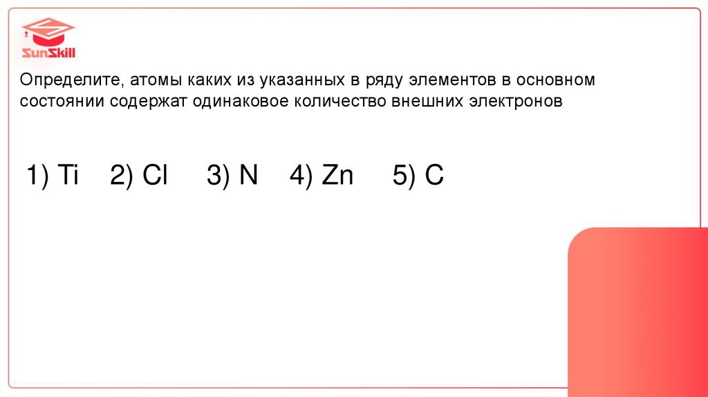 Определите, атомы каких из указанных в ряду элементов в основномсостоянии содержат одинаковое количество внешних электронов