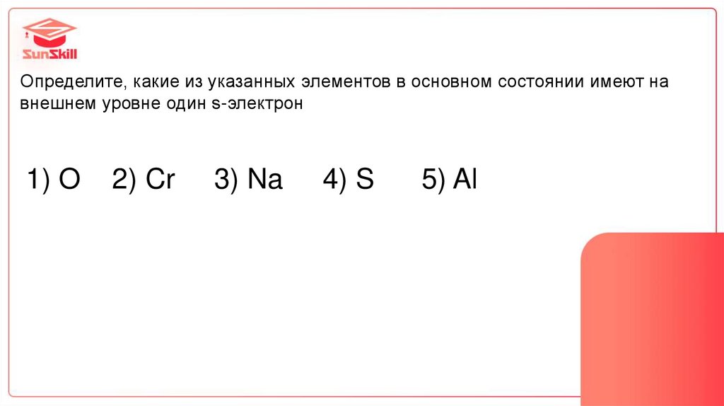 Определите, какие из указанных элементов в основном состоянии имеют навнешнем уровне один s-электрон