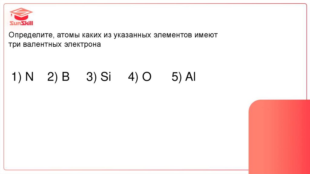 Определите, атомы каких из указанных элементов имеюттри валентных электрона