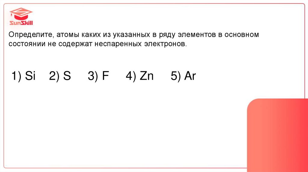 Определите, атомы каких из указанных в ряду элементов в основномсостоянии не содержат неспаренных электронов.