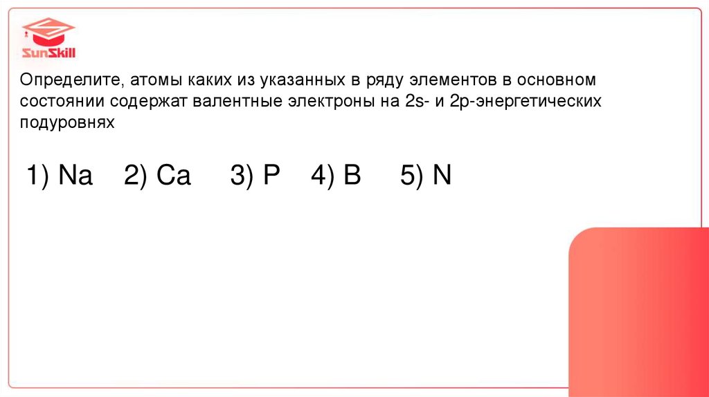 Определите, атомы каких из указанных в ряду элементов в основномсостоянии содержат валентные электроны на 2s- и 2p-энергетических