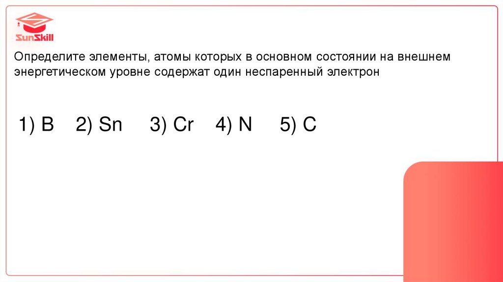 Определите элементы, атомы которых в основном состоянии на внешнемэнергетическом уровне содержат один неспаренный электрон