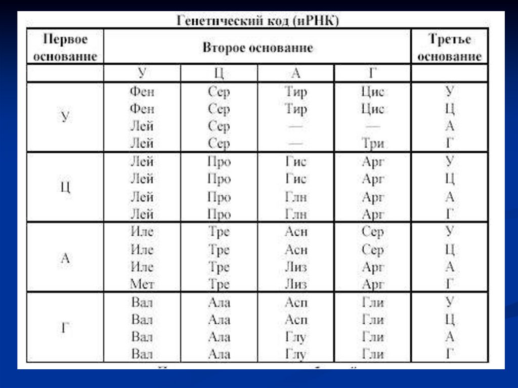 содержащих аденин (А), гуанин (Г), тимин (Т) и цитозин