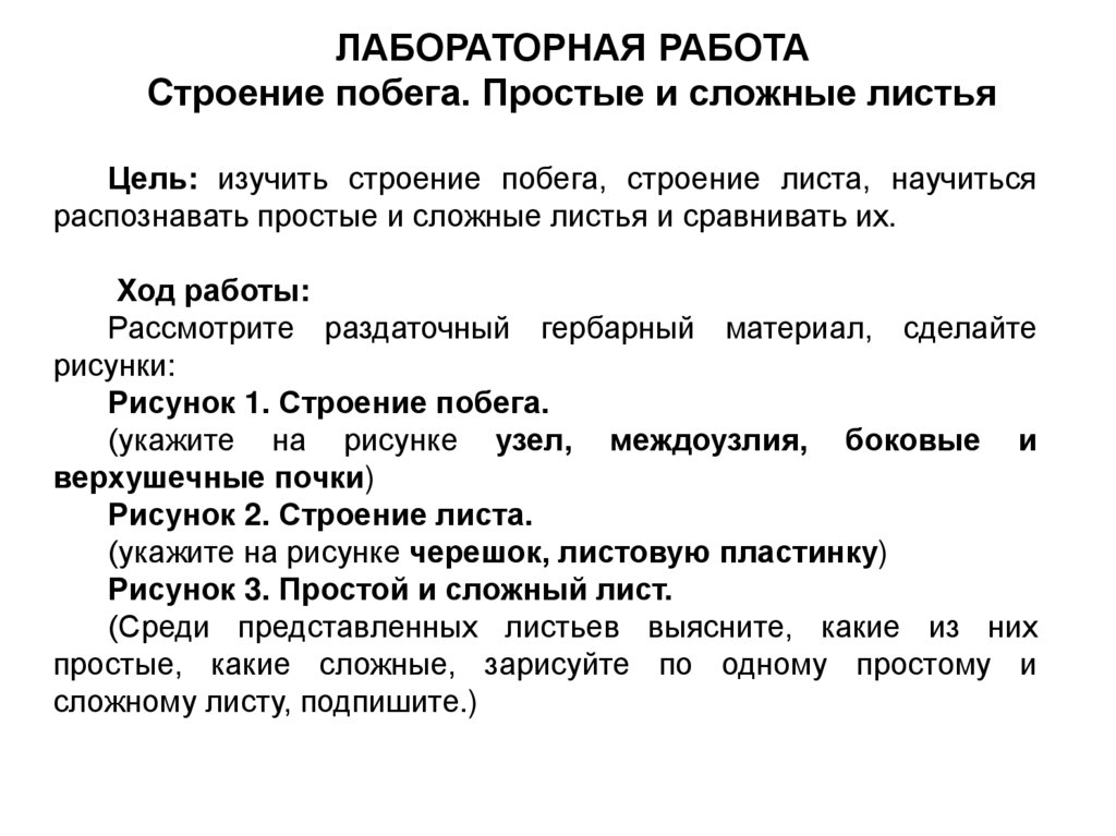 ЛАБОРАТОРНАЯ РАБОТАСтроение побега. Простые и сложные листья