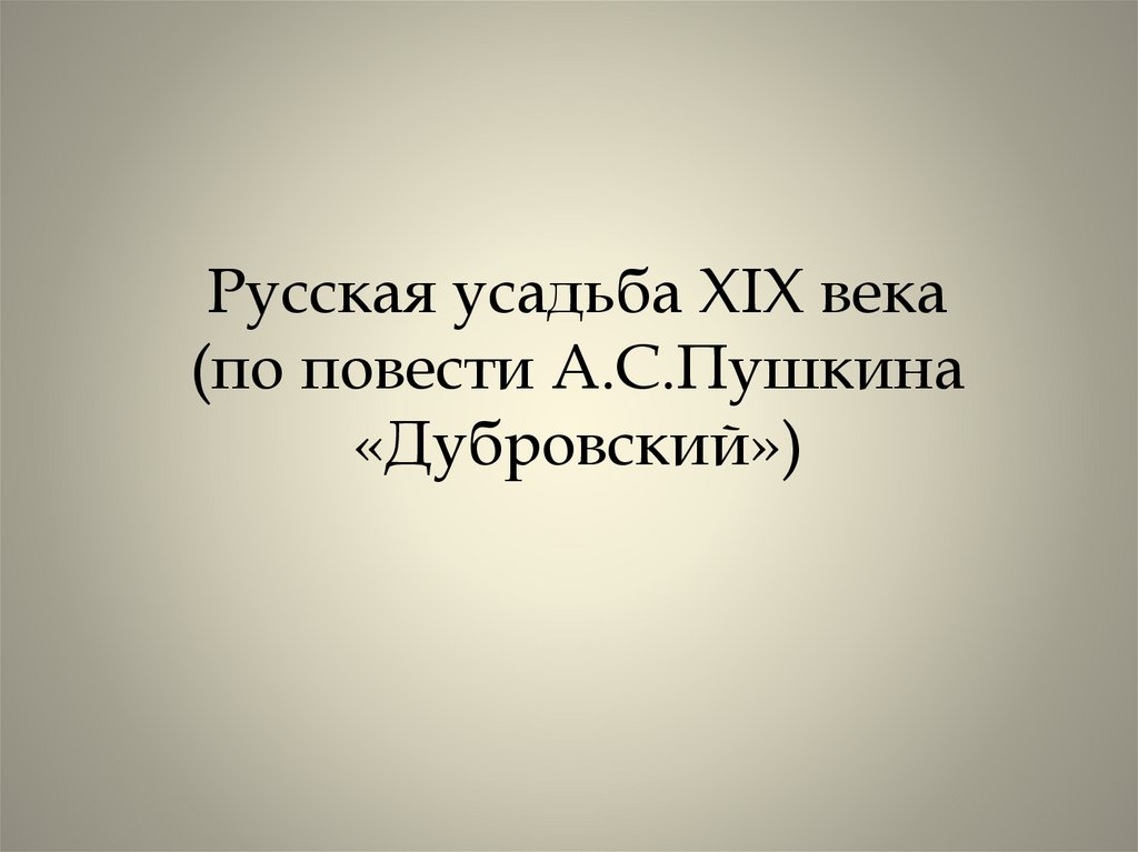 Русская усадьба XIX века(по повести А.С.Пушкина