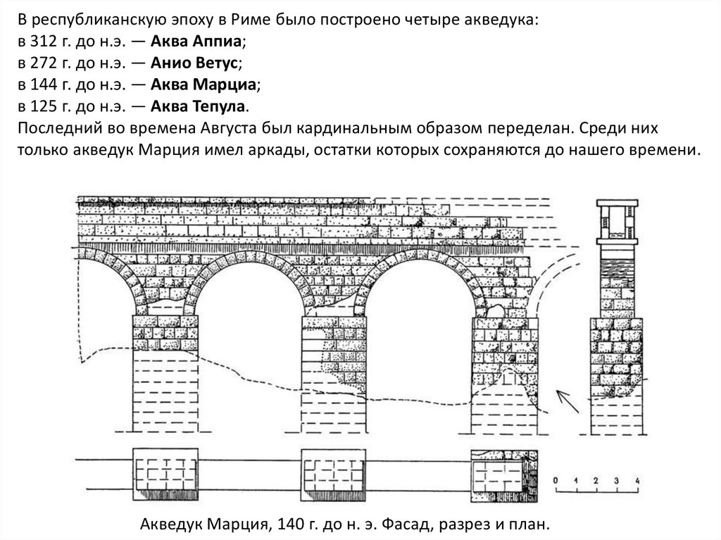 В республиканскую эпоху в Риме было построено четыре акведука:в 312 г. до н.э. — Аква Аппиа;