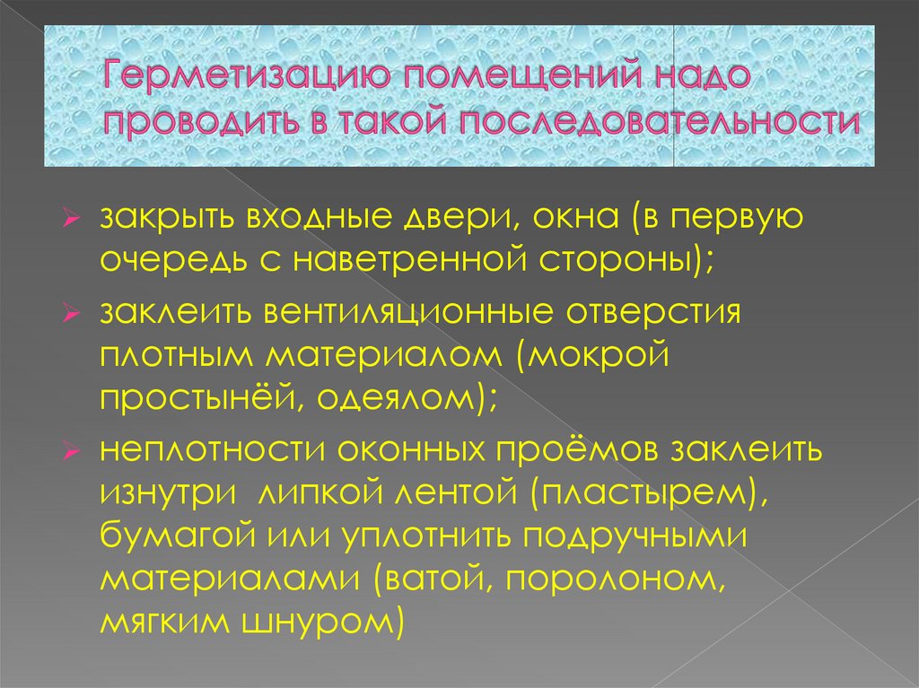 закрыть входные двери, окна (в первуюочередь с наветренной стороны);