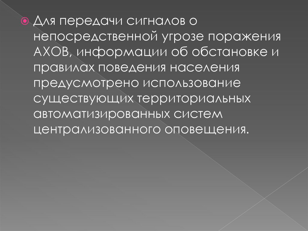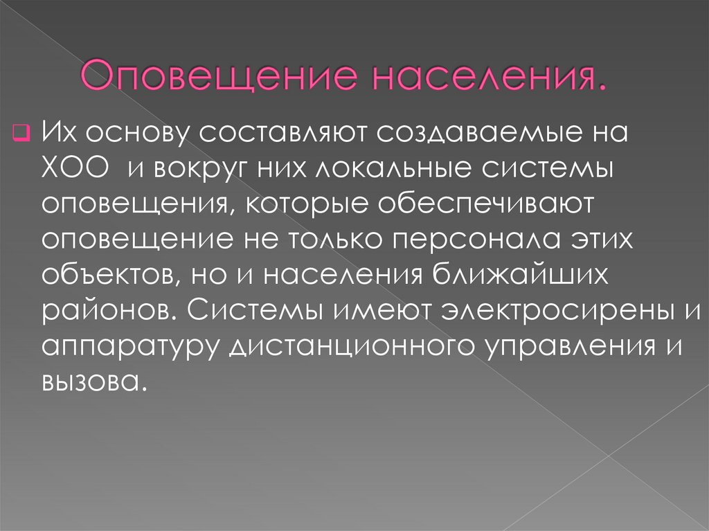 создают систему и устанавливают порядок оповещения обавариях на ХОО;
