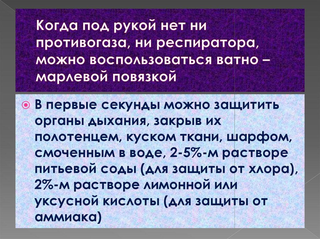 В первые секунды можно защититьорганы дыхания, закрыв их