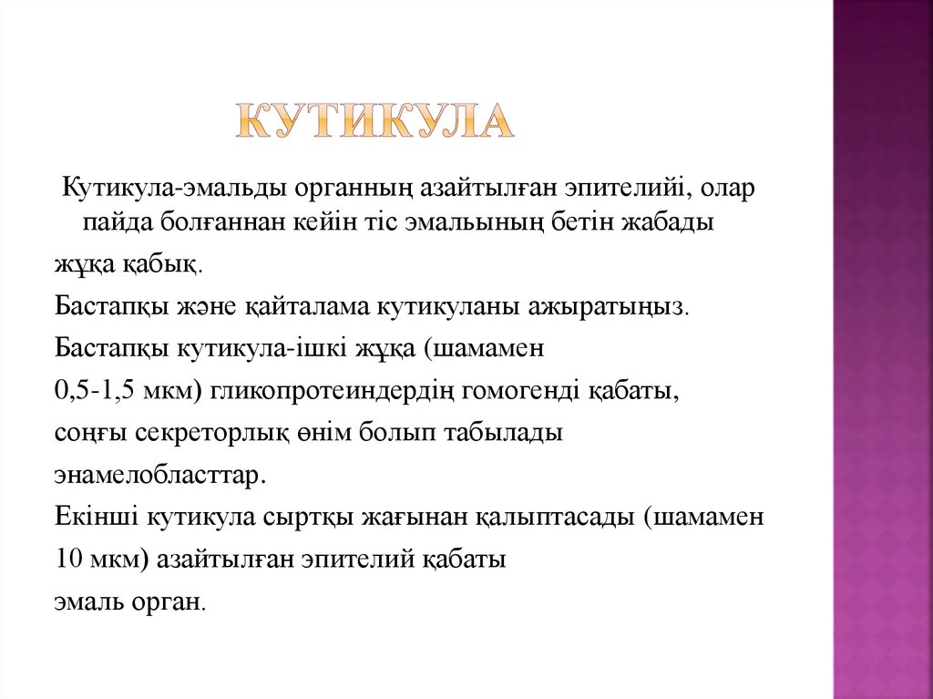 Кутикула-эмальды органның азайтылған эпителийі, оларпайда болғаннан кейін тіс эмальының бетін жабады