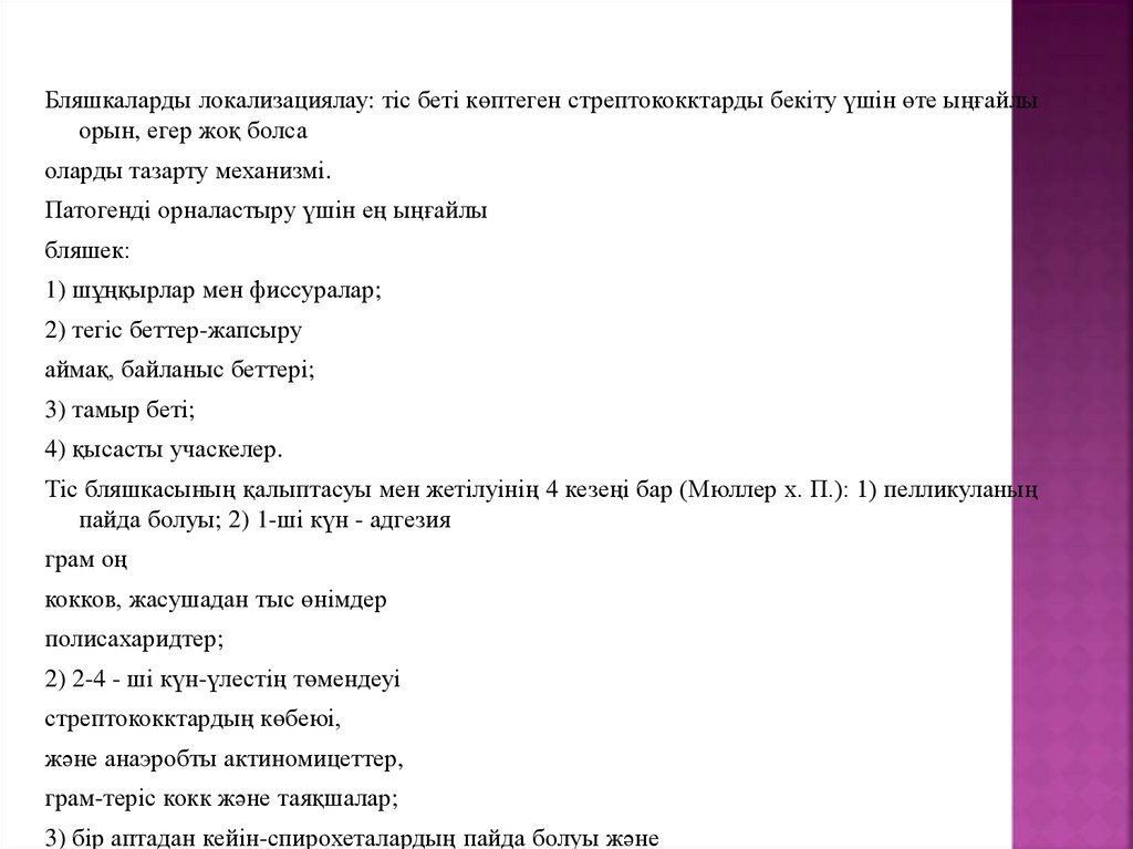 Бляшкаларды локализациялау: тіс беті көптеген стрептококктарды бекіту үшін өте ыңғайлыорын, егер жоқ болса