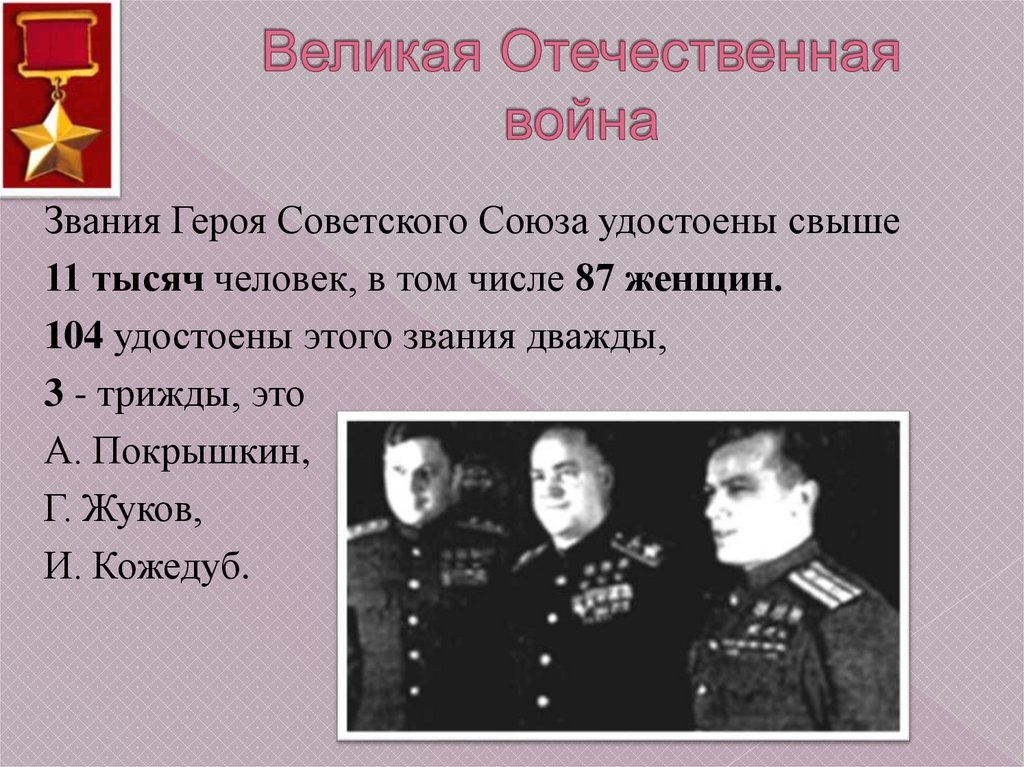 Звания Героя Советского Союза удостоены свыше11 тысяч человек, в том числе 87 женщин.