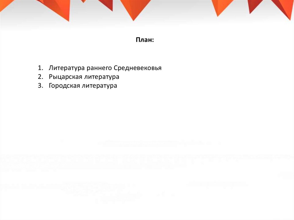 План:1. Литература раннего Средневековья