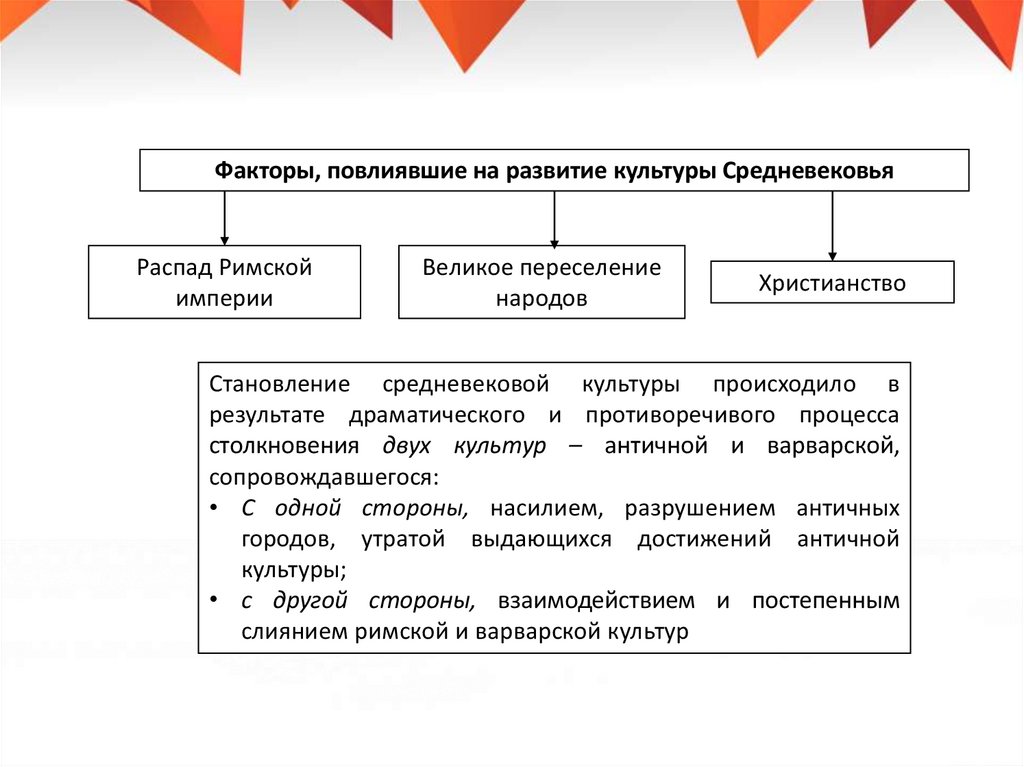 Факторы, повлиявшие на развитие культуры СредневековьяРаспад Римской
