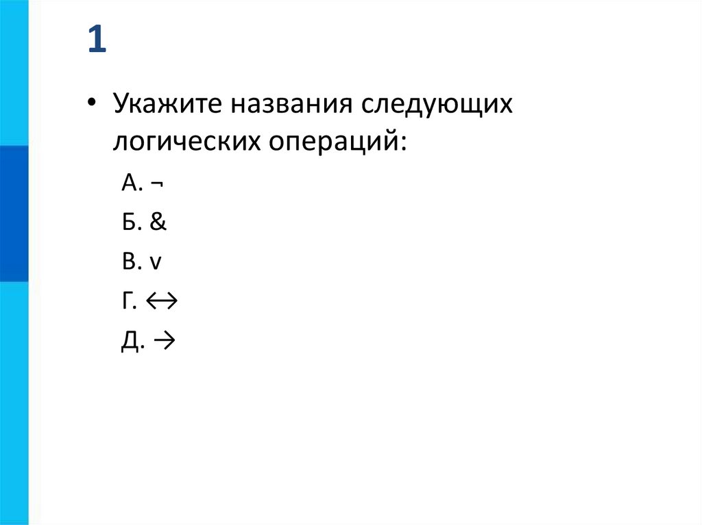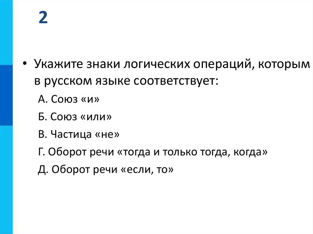 2• Укажите знаки логических операций, которым