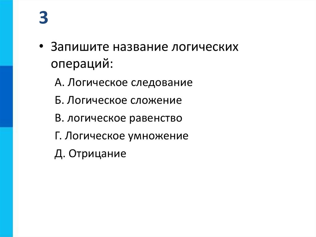 3• Запишите название логических