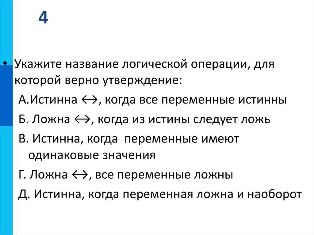 4• Укажите название логической операции, для