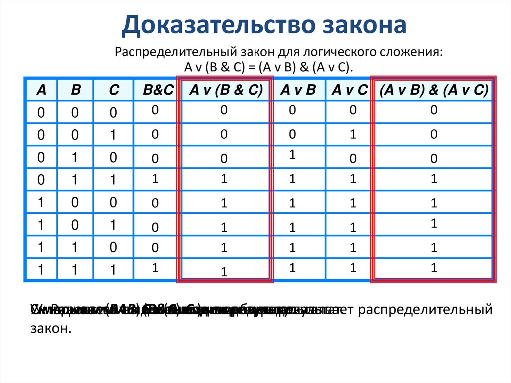 Доказательство законаРаспределительный закон для логического сложения: