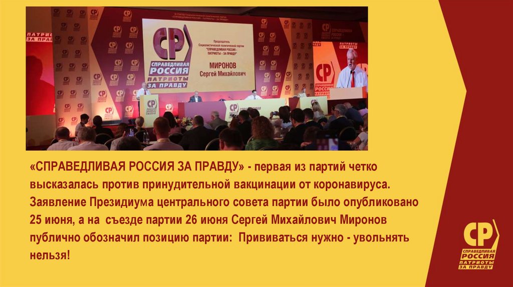 «СПРАВЕДЛИВАЯ РОССИЯ ЗА ПРАВДУ» - первая из партий четковысказалась против принудительной вакцинации от коронавируса.