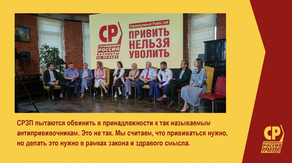 СРЗП пытаются обвинить в принадлежности к так называемымантипрививочникам. Это не так. Мы считаем, что прививаться нужно,