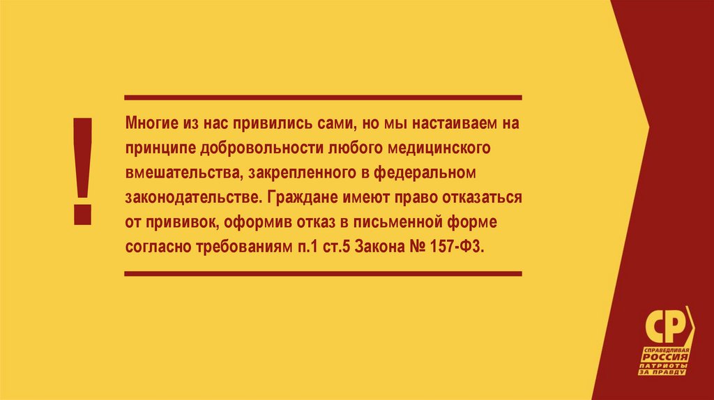 Партия «Справедливая Россия за правду» против принудительной вакцинации от коронавируса